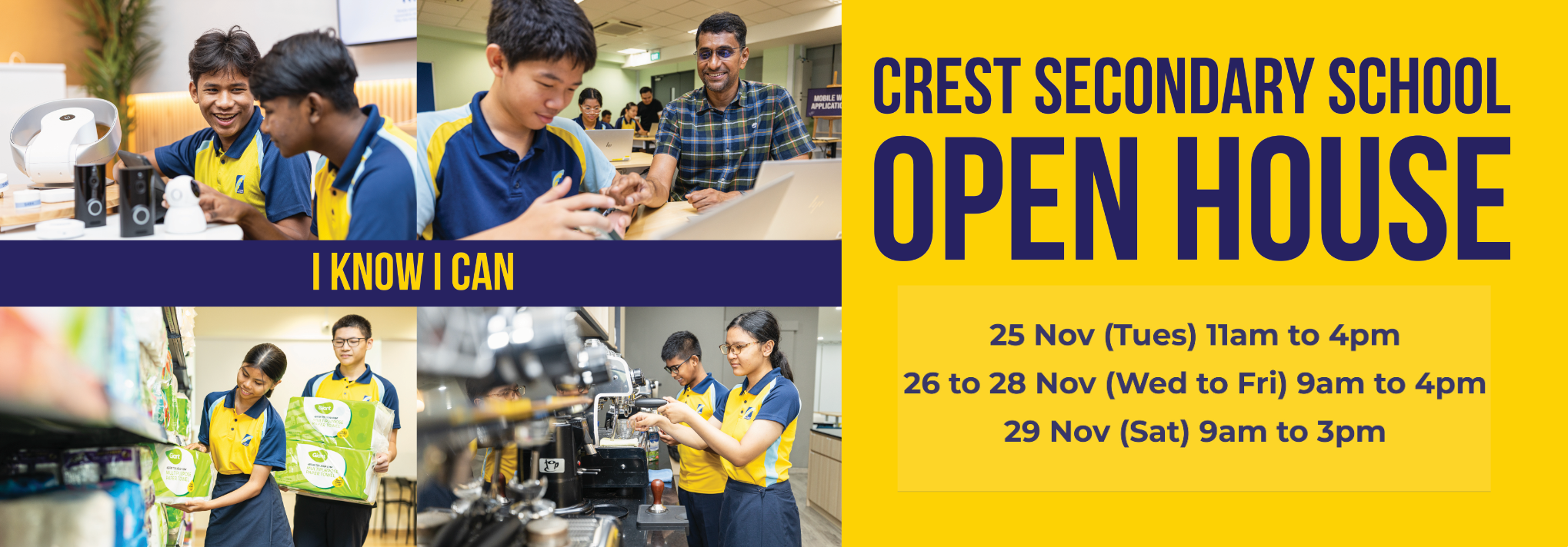 When you collect your child's PSLE results on 25th November 2025, we invite you to visit Crest Secondary School with your child/ward to learn more about our programmes. Give your child the best chance of joining Crest by submitting a direct application before the Secondary 1 Posting Exercise. Alternatively, you can include Crest as one of your school choices during the posting exercise.