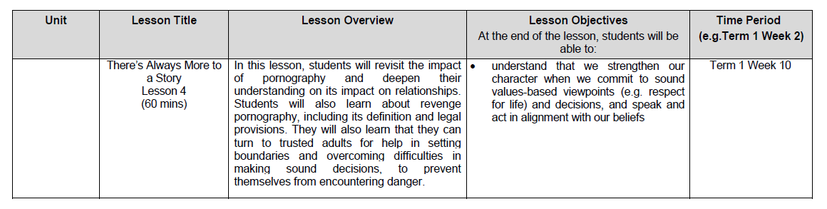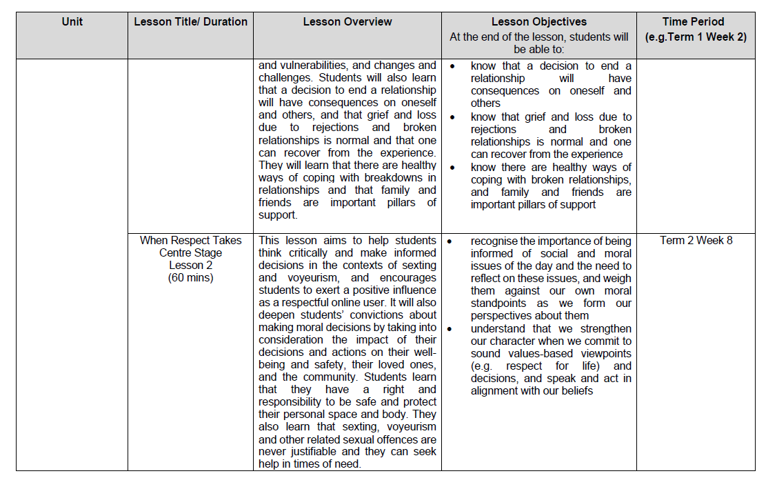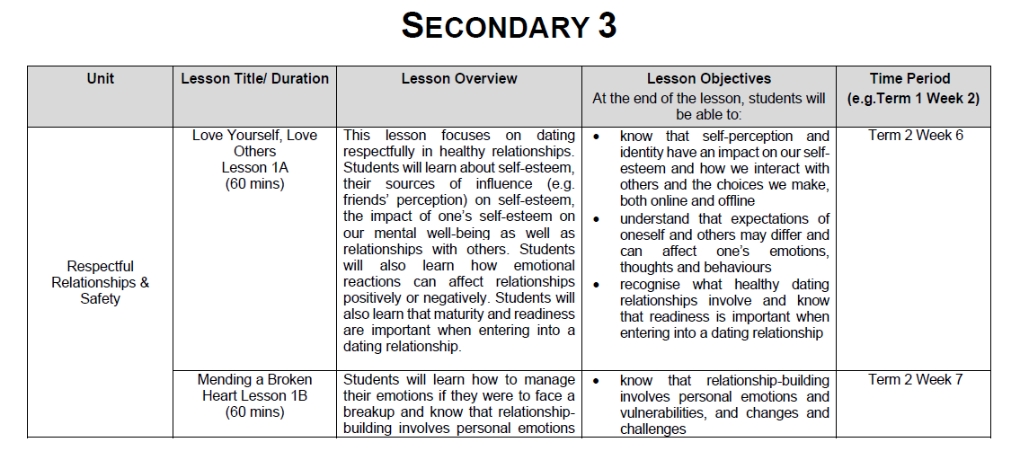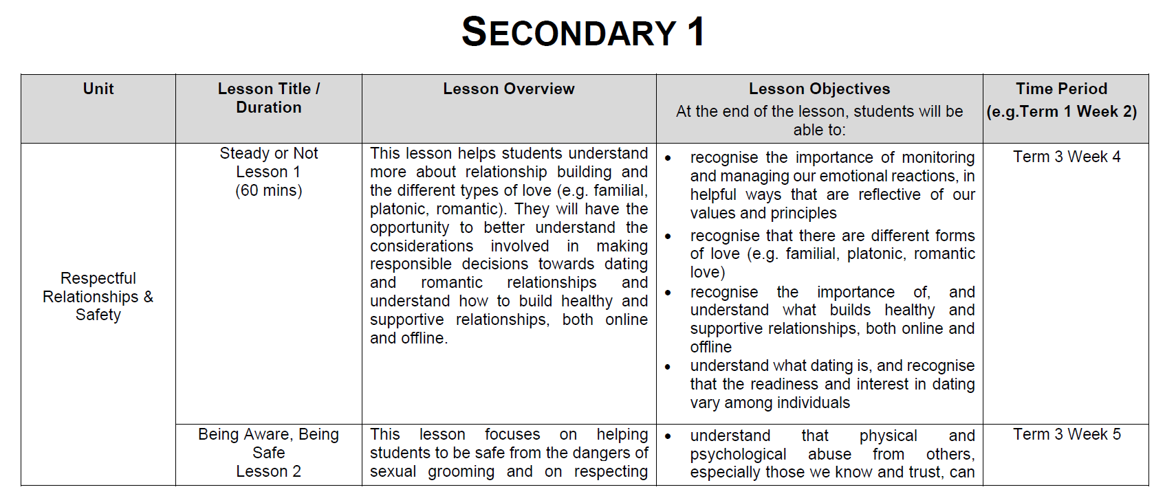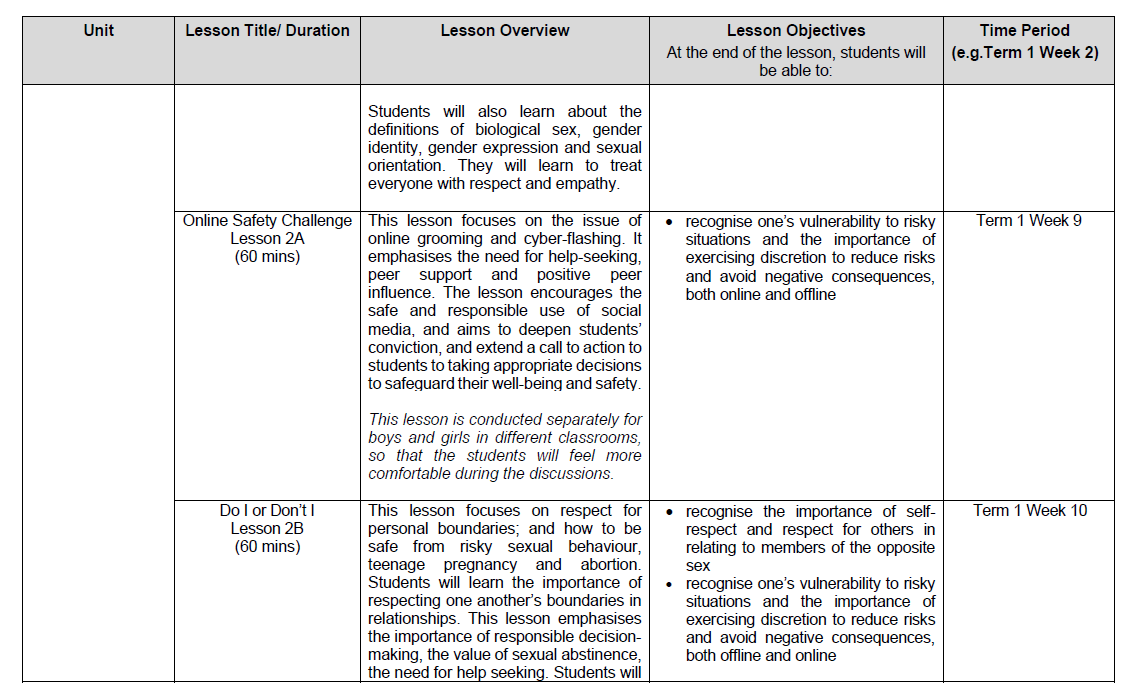At CREST Secondary School, the following Sexuality Education lessons will be taught in 2026: