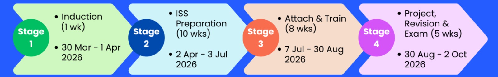 4 months of intensive skills development from 1 of the 3 ISS